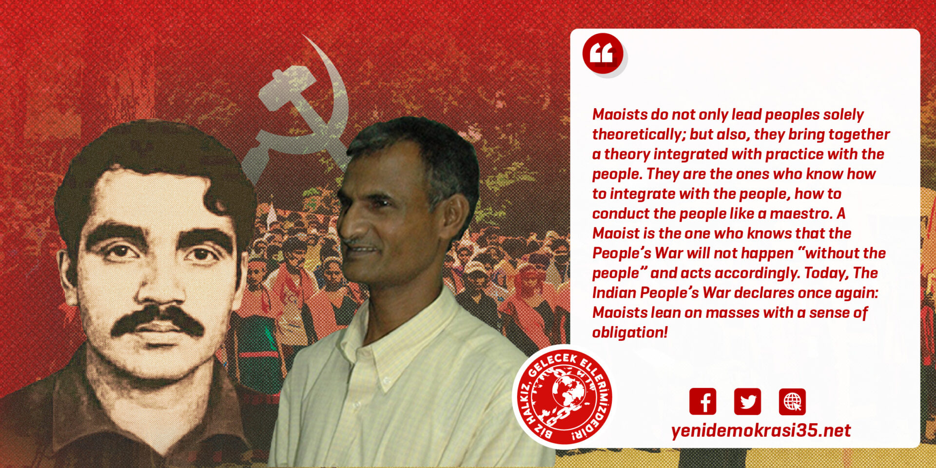 Sabemos que o progresso não ocorrerá em um caminho apartado das massas, e que não pode haver avanço na revolução sem a integração com as massas. Não é, de forma alguma, uma coincidência que, hoje, dezenas de milhares participem dos funerais dos nossos camaradas na Índia; que o povo participe das organizações, contribua na gestão do processo, trabalhe abnegadamente, e que todos os setores do povo tenham entregado seus corações a essa causa.