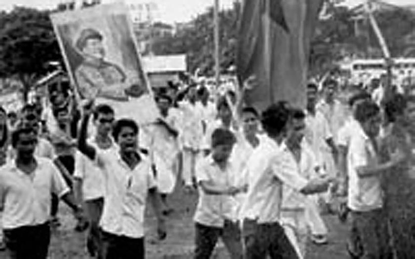Centenas de milhares de mártires que caíram em combate agora conclamam vocês, jovens e estudantes, a se erguerem e lutarem. O dia chegou, finalmente, em que devemos saldar as dívidas de sangue e derrubar os imperialistas e as classes exploradoras reacionárias…