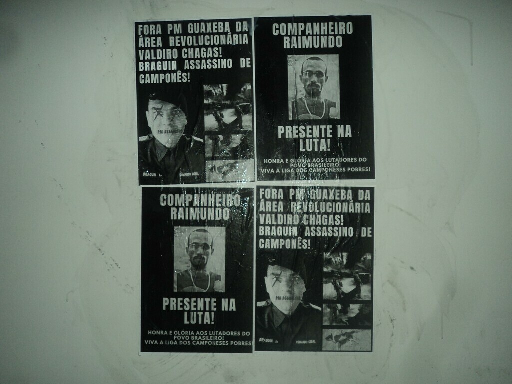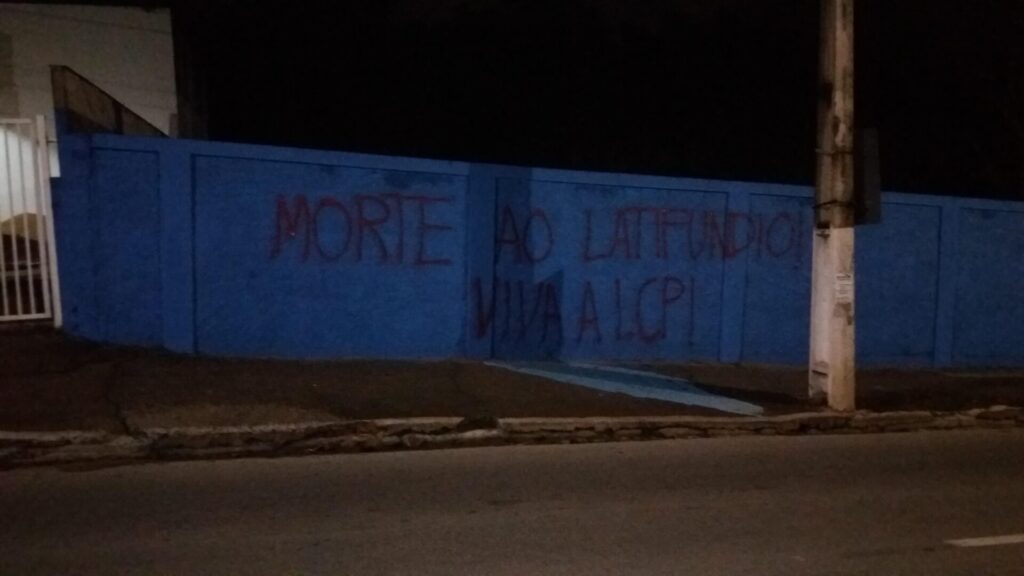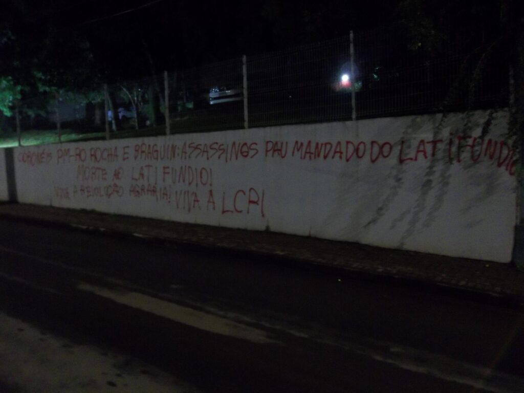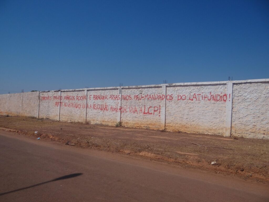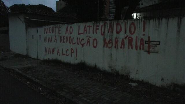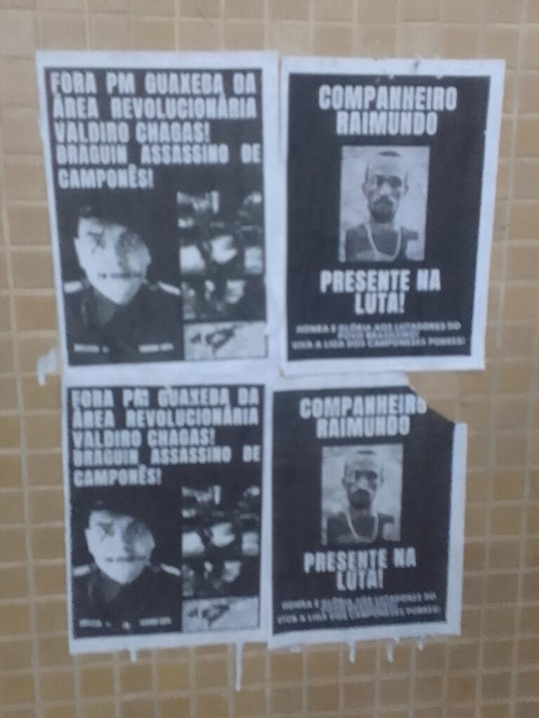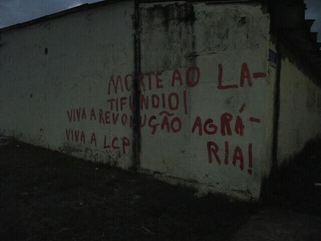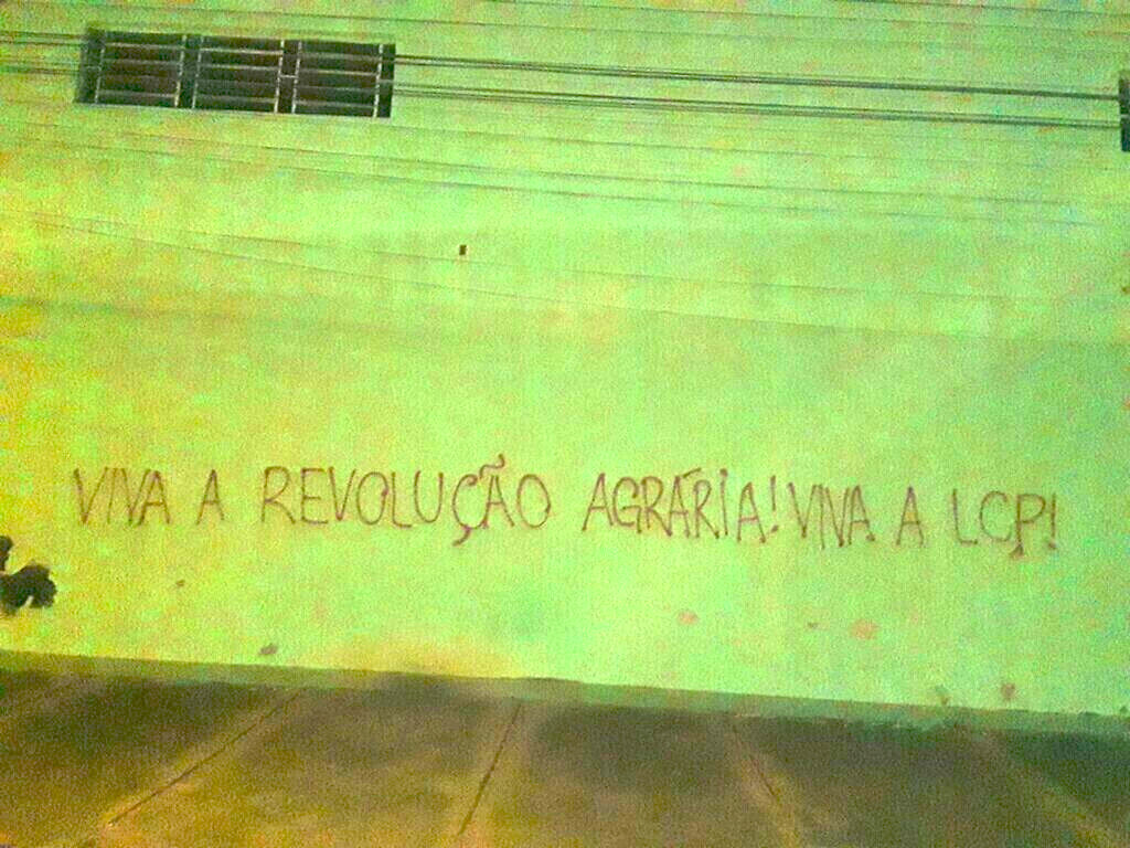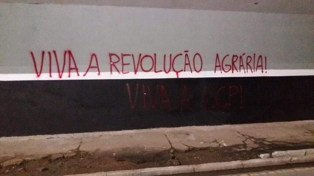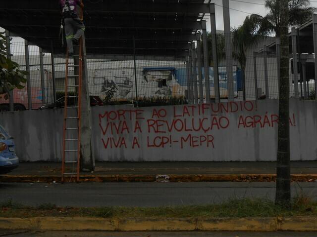 Recebemos nos últimos dias registros de várias regiões do País, de diversas ações de propaganda revolucionária em apoio à Liga dos Camponeses Pobres – LCP e à Revolução Agrária em curso no Brasil, bem como em condenação à Polícia Militar de Rondônia e seu comandante Cel. Régis Braguin e os cães do latifúndio Gesulino Travagine Castro e a cumplicidade do governador Marcos Rocha.