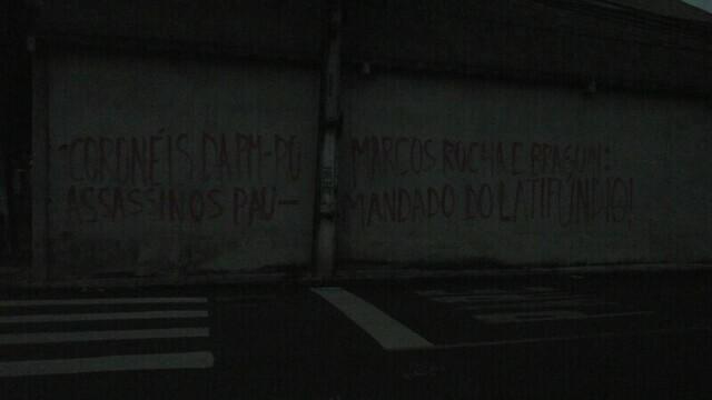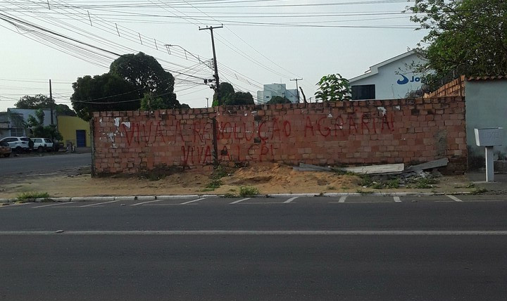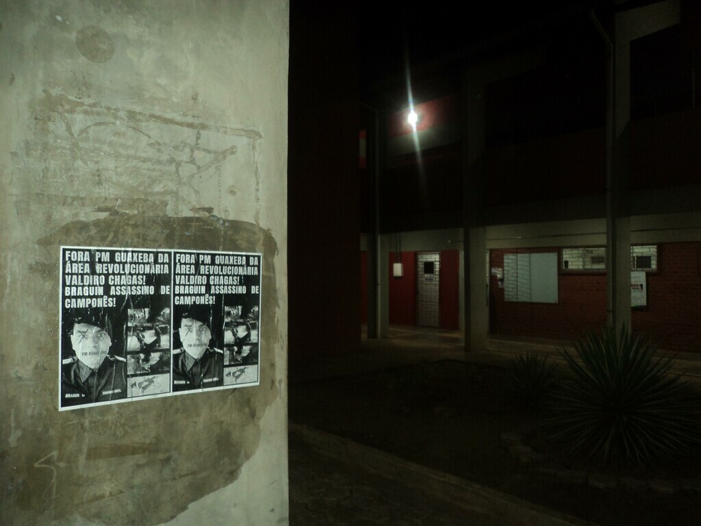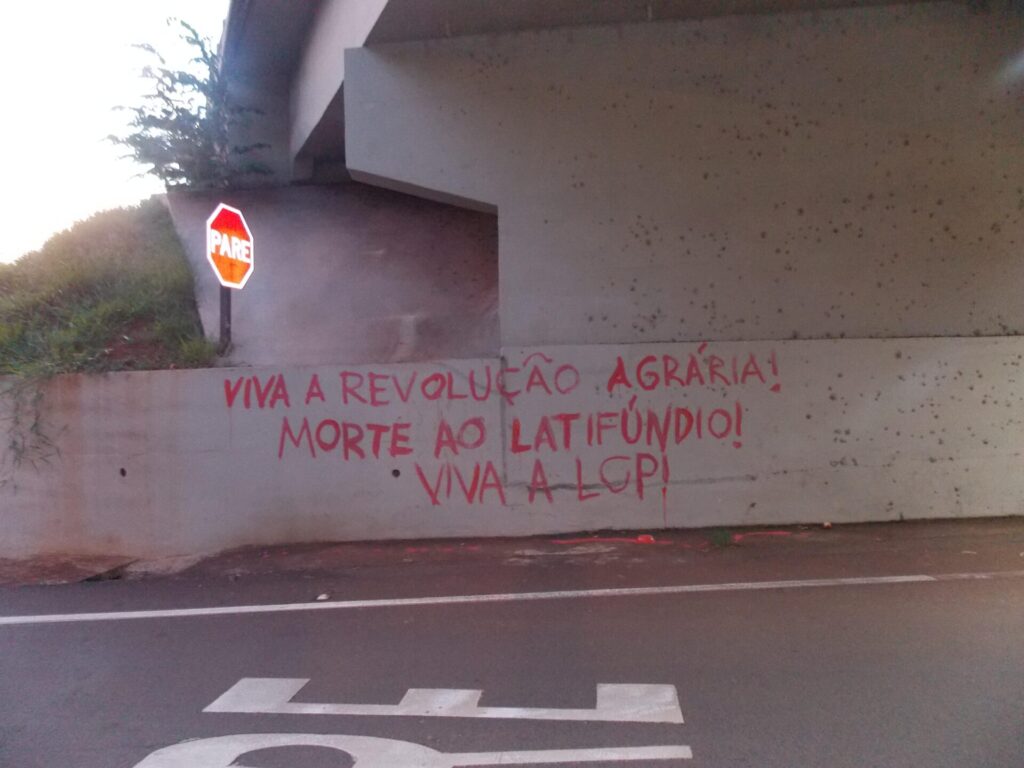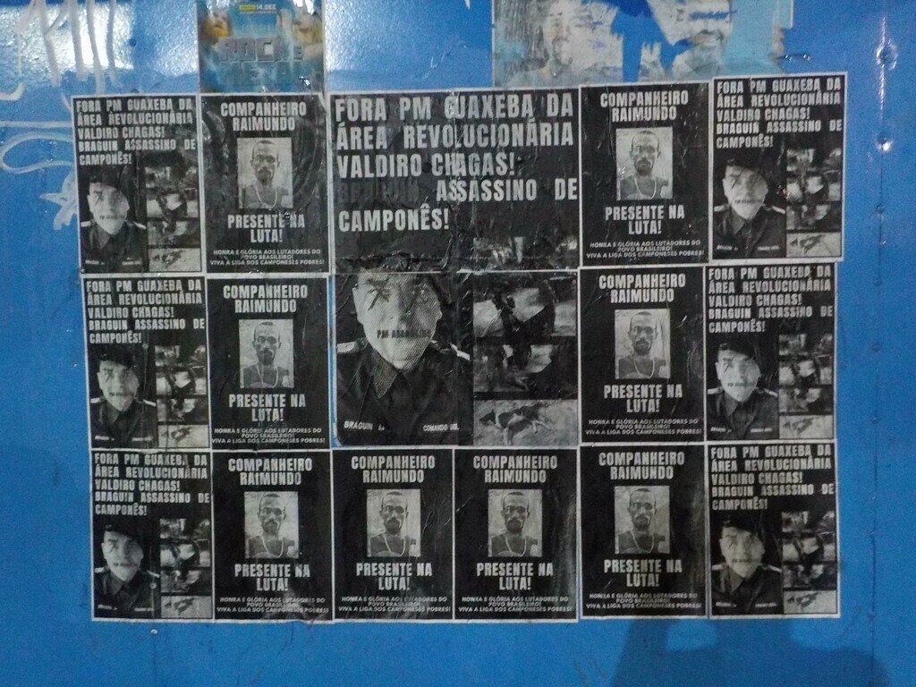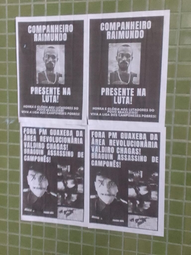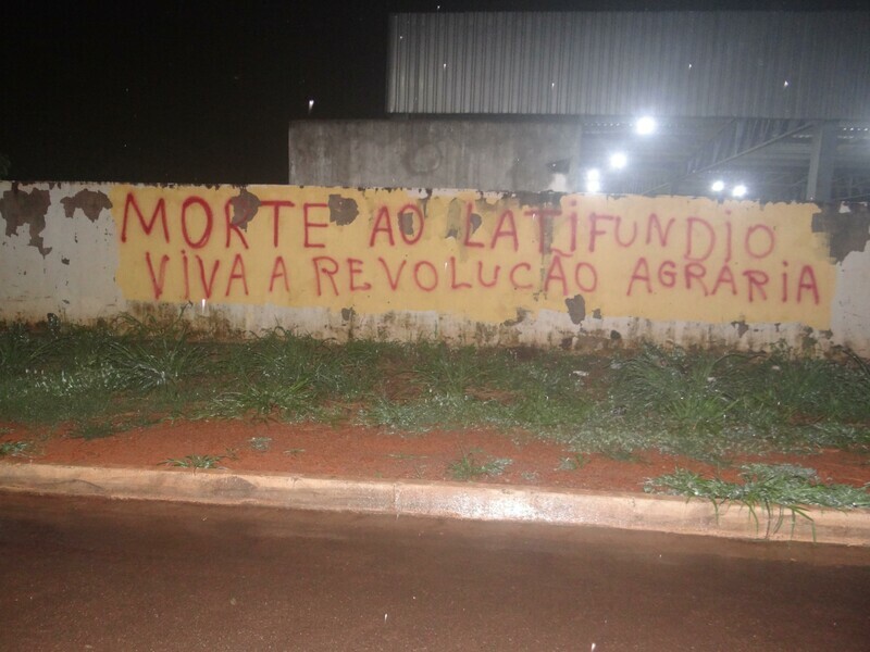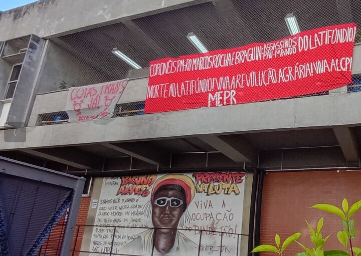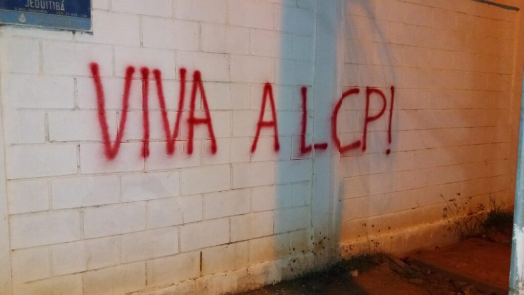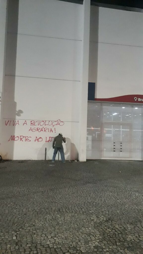 Recebemos nos últimos dias registros de várias regiões do País, de diversas ações de propaganda revolucionária em apoio à Liga dos Camponeses Pobres – LCP e à Revolução Agrária em curso no Brasil, bem como em condenação à Polícia Militar de Rondônia e seu comandante Cel. Régis Braguin e os cães do latifúndio Gesulino Travagine Castro e a cumplicidade do governador Marcos Rocha.